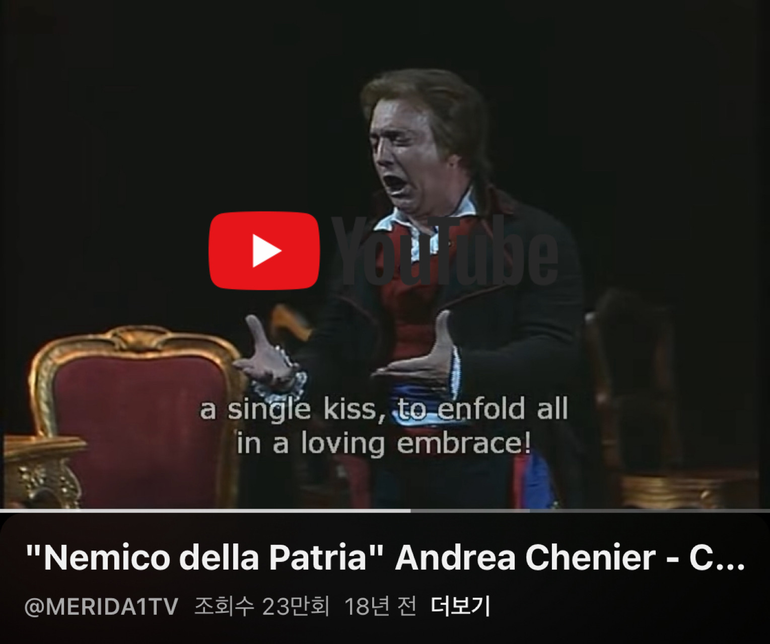 Umberto Giordano의 오페라 《Andrea Chénier》(안드레아 셰니에, 1896)는 이탈리아 베리스모 오페라의 대표작 중 하나입니다.